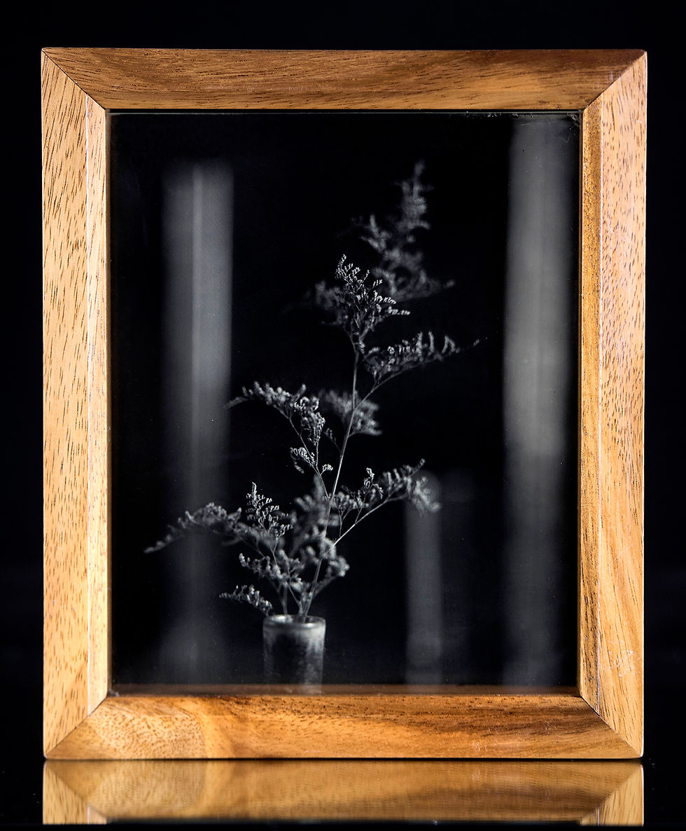 Esta serie sobre la fragilidad es un ejercicio de iniciación, retomé el concepto de los bodegones clásicos para emprender un nuevo camino al retomar esta técnica del siglo XIX. La serie esta desarrollada en colodión huúmedo, ambrotipos y ferrotipos de 4x5 y 8x10 puldadas, montadas en marcos y cajas de madera hecho a mano.